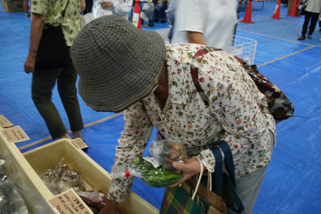 葉がしっかりしたツルムラサキ等、10種類以上が並びました。