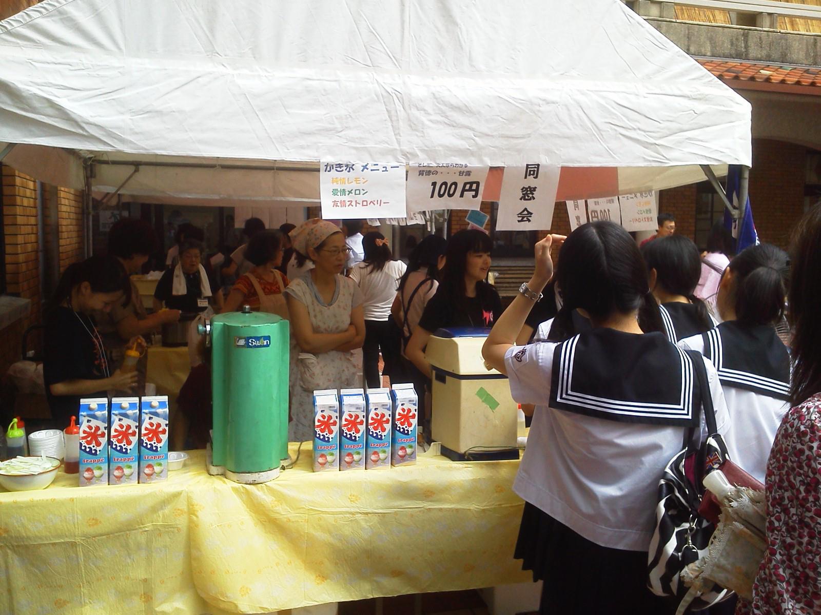 中庭フードコートでは、同窓会手作りお弁当・かき氷・