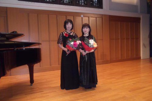 出演の戸﨑廣乃さんと小林恵子さんに同窓会より花束を贈呈致しました。
