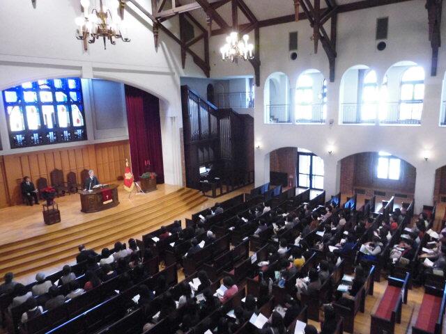 学年を超えて礼拝堂に集った皆様が共に礼拝をもちました。