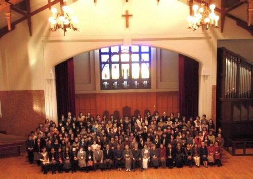昭和33年卒・48年卒・58年卒・平成5年卒・15年卒の皆様が200名近く母校 静岡英和女学院の礼拝堂に集いました。