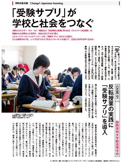 静岡英和女学院のICT教育(タブレット端末を利用し 受験サプリを導入し た授業)の様子が掲載されました。