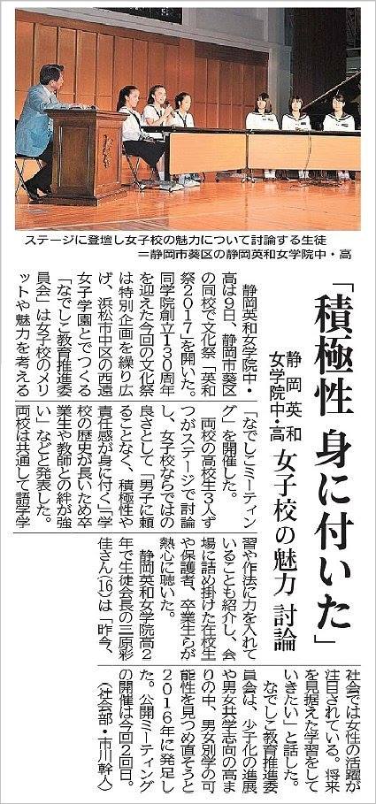 母校静岡英和女学院の活動や、英和生の活躍が静岡新聞に連日掲載されております。