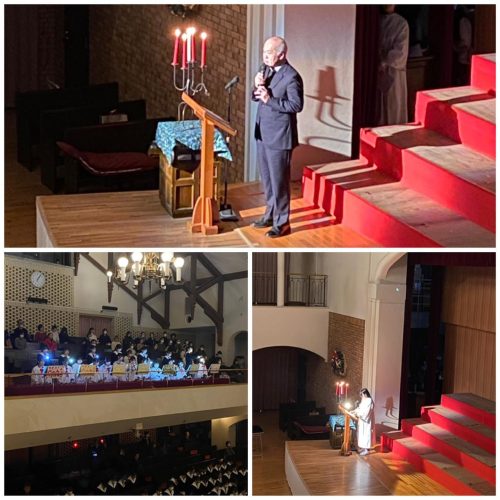 ハンドベルの音色のもと、キャンドル・サービスによって